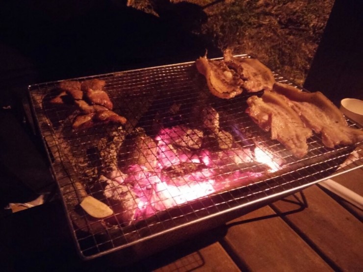 공예촌 작가동 옆 정자에서 목살과 삼겹살, 염통을 원없이 구워먹었습니다.