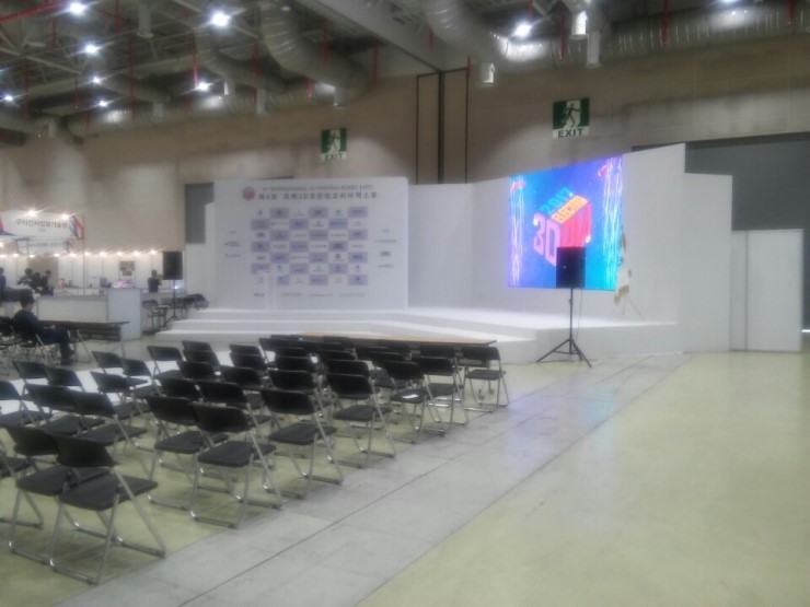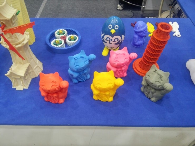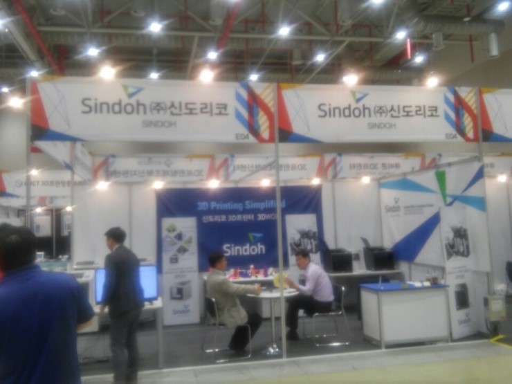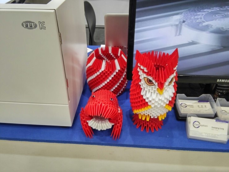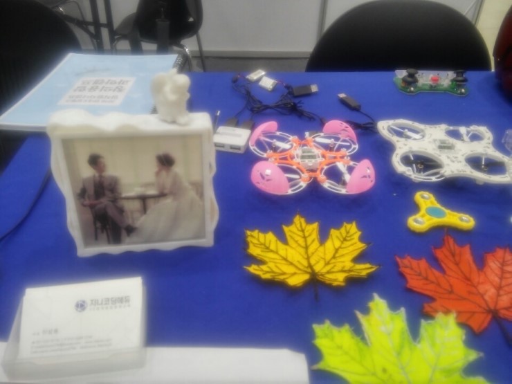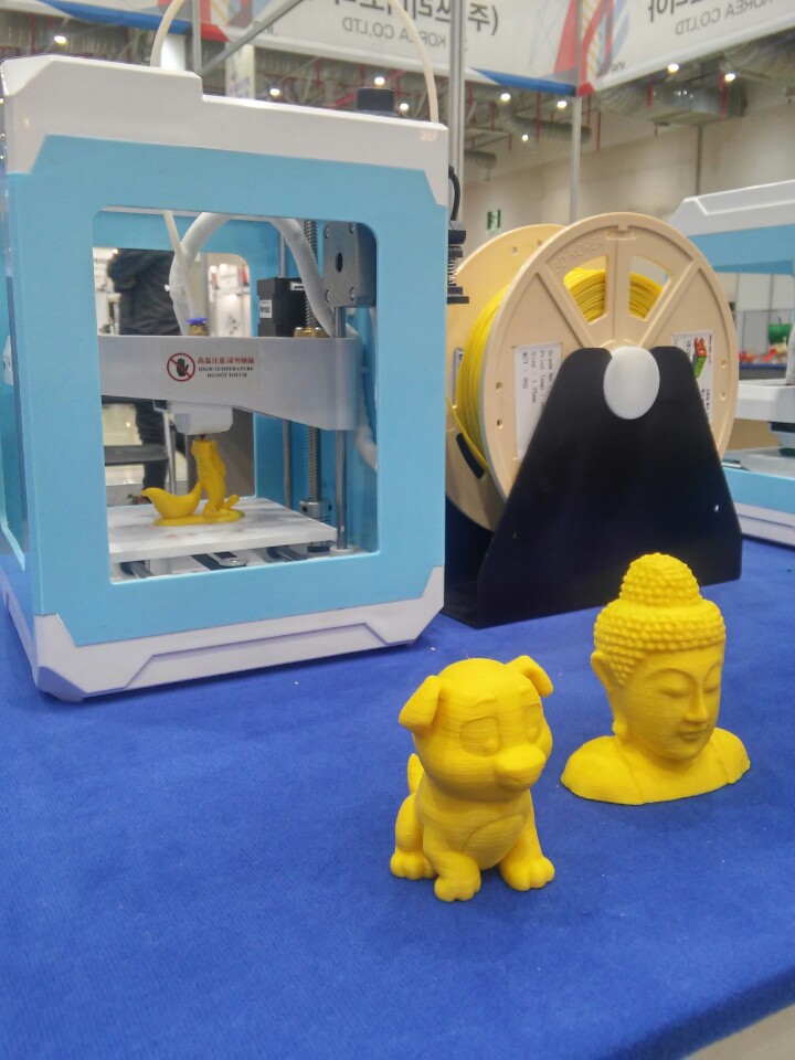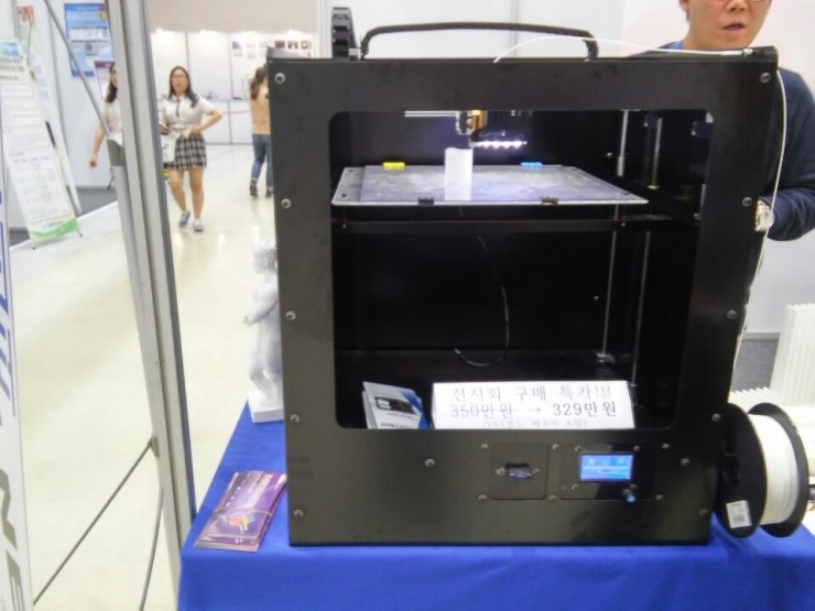 이 부스에서는 필라멘트 15개이상 구매를 하면 소형 FDM방식의 3D프린터를 무료로 제공하였습니다. 출력크기는 12센티 정도로 보이네요.