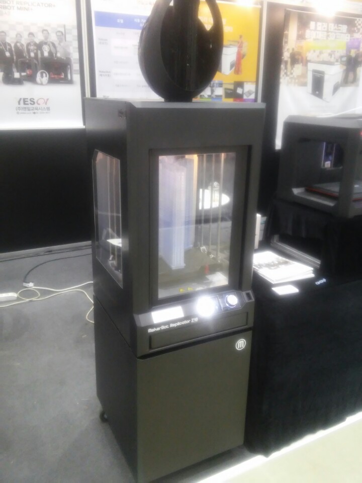 메이커봇 부스네요. 위의 출력물은 헬멧이더군요.