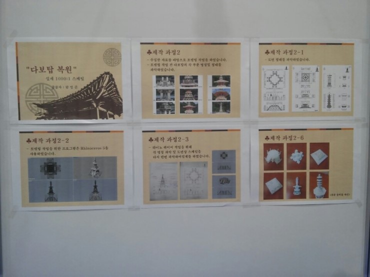 또 다른 작품입니다. 다보탑을 3D모델링을 이용하여, 모델링 한 후 파트별로 출력 및 조립을 진행하였네요.