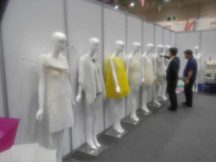 3D프린트를 이용한 의상디자인, 체인식으로 연결되어 있어서 중세시대의 갑옷 같기도 했습니다.